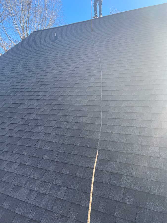 Check out this soft wash roof cleaning we did at this house in Buford, Georgia. You can see in the pictures that there WAS moss growing on and in between the shingles!